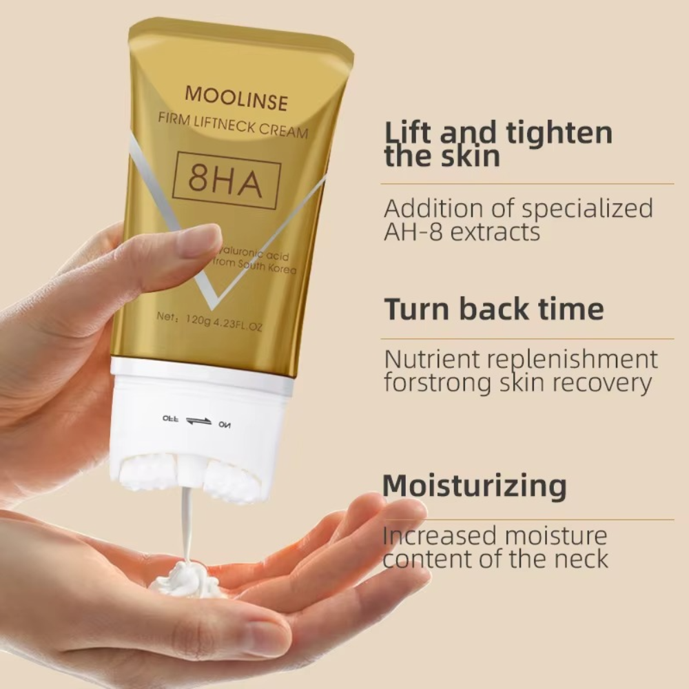 - Strafft & liftet Hals- und Kinnkonturen